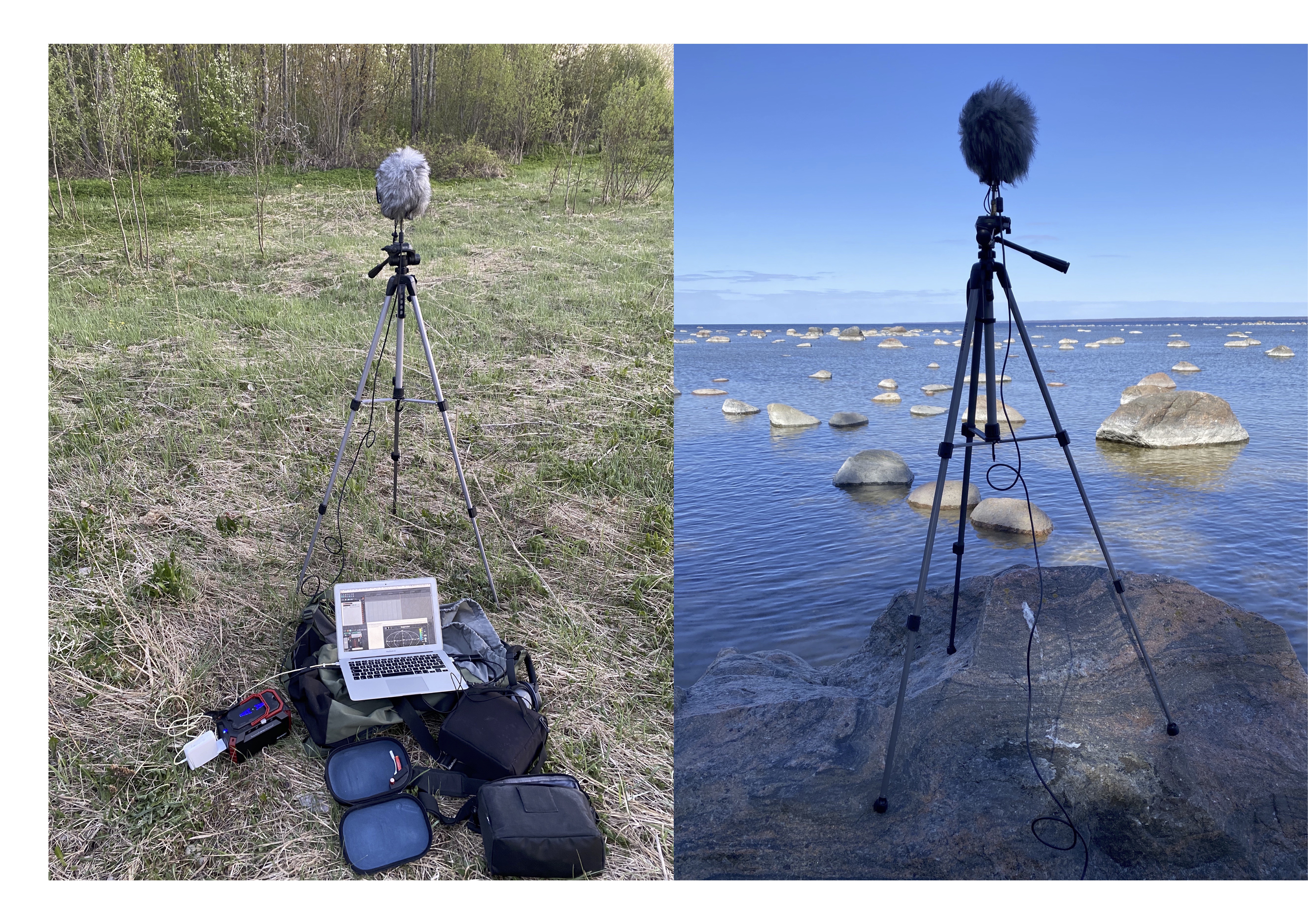 In urban situations the careful choice of the recording spots has been essential finding soundscape situations with sound sources from as many different directions as possible. There have been meaningful and iconic soundscape spots like a pedestrian wooden bridge beside a railway bridge in the city of Helsinki, or a crossroad passing by several types of trams in Tallinn. A different sounding environment has been found in Spring with bird songs from a small island in the Gulf of Finland or from a manor park in Central Estonia.