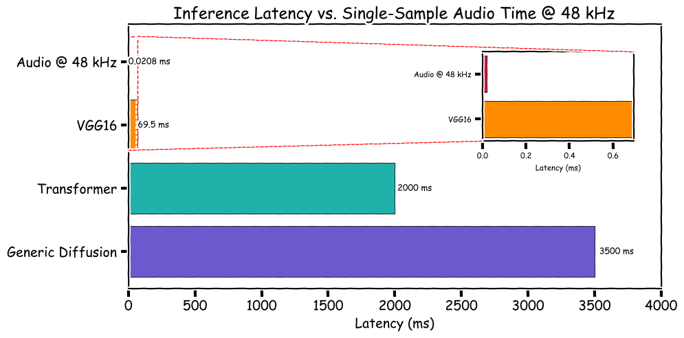 Hard real-time audio requires bounded execution in every cycle. This work has outlined constraints on expectations, network design, and code implementation, showing how models can be made feasible under strict deadlines. The priority is not throughput but determinism; because in real-time audio, missing the deadline is not a slowdown, it is failure.