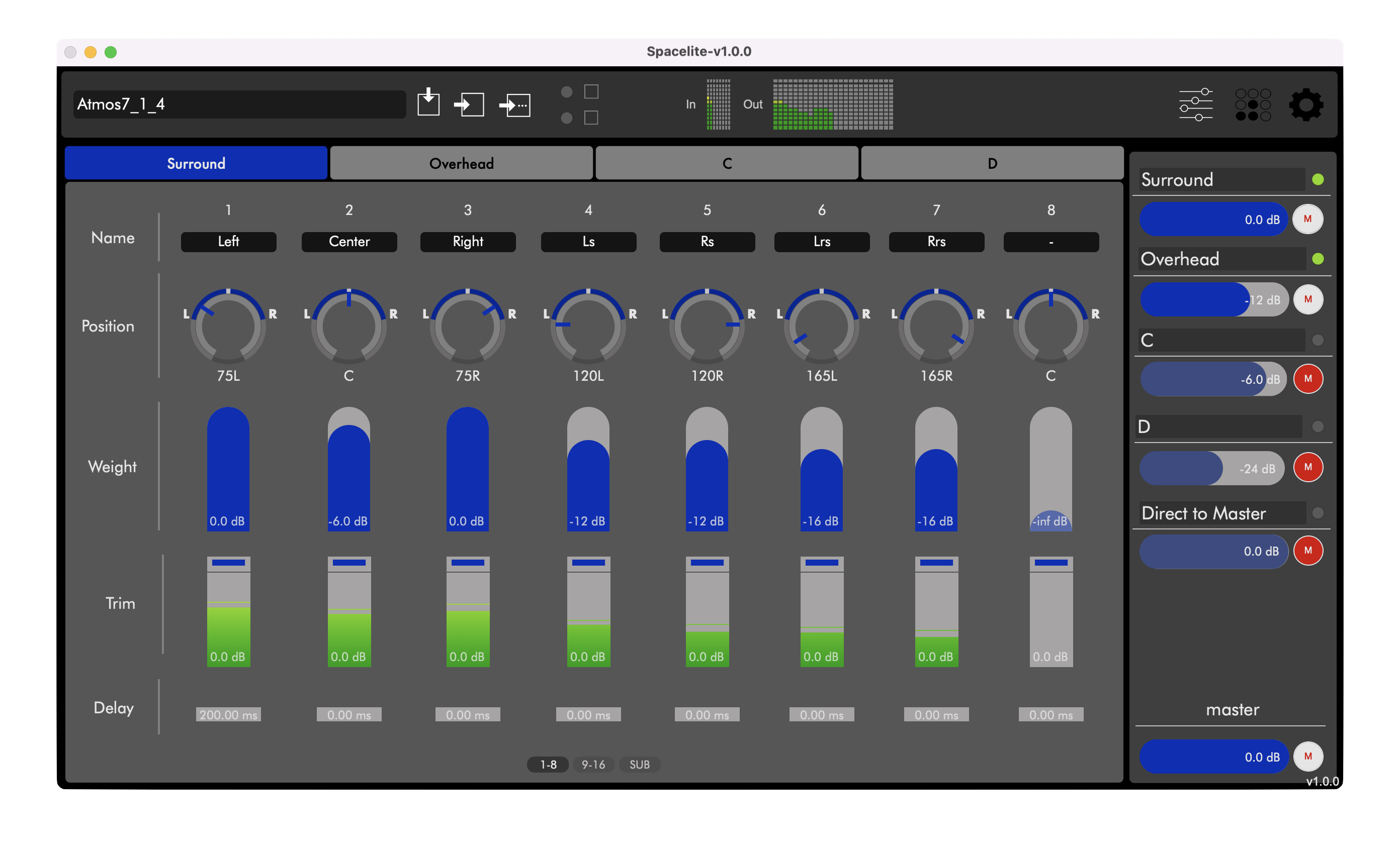 Full routing matrix : Per-channel weight, pan, and gain