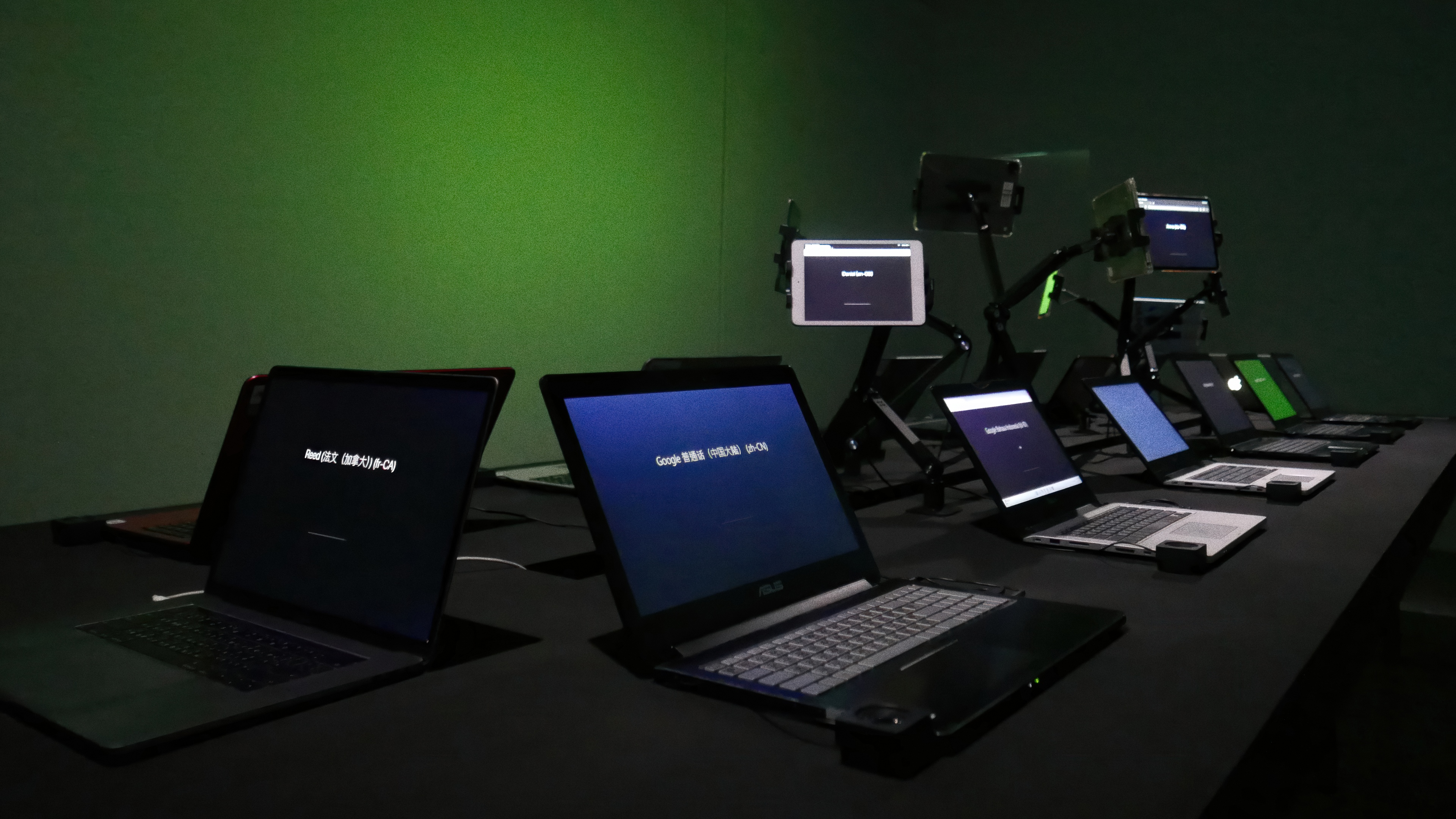 The system's architecture routes text through a Max/MSP patch to a cloud server, which distributes fragments via WebSocket to connected browsers. Each device reads the assigned content aloud using its built-in speech engine. As more devices join, differences in hardware, network quality, and vocal character introduce unpredictable shifts in rhythm and alignment. The system foregrounds rather than corrects these deviations: glitches, offsets, and device heterogeneity become performative material.