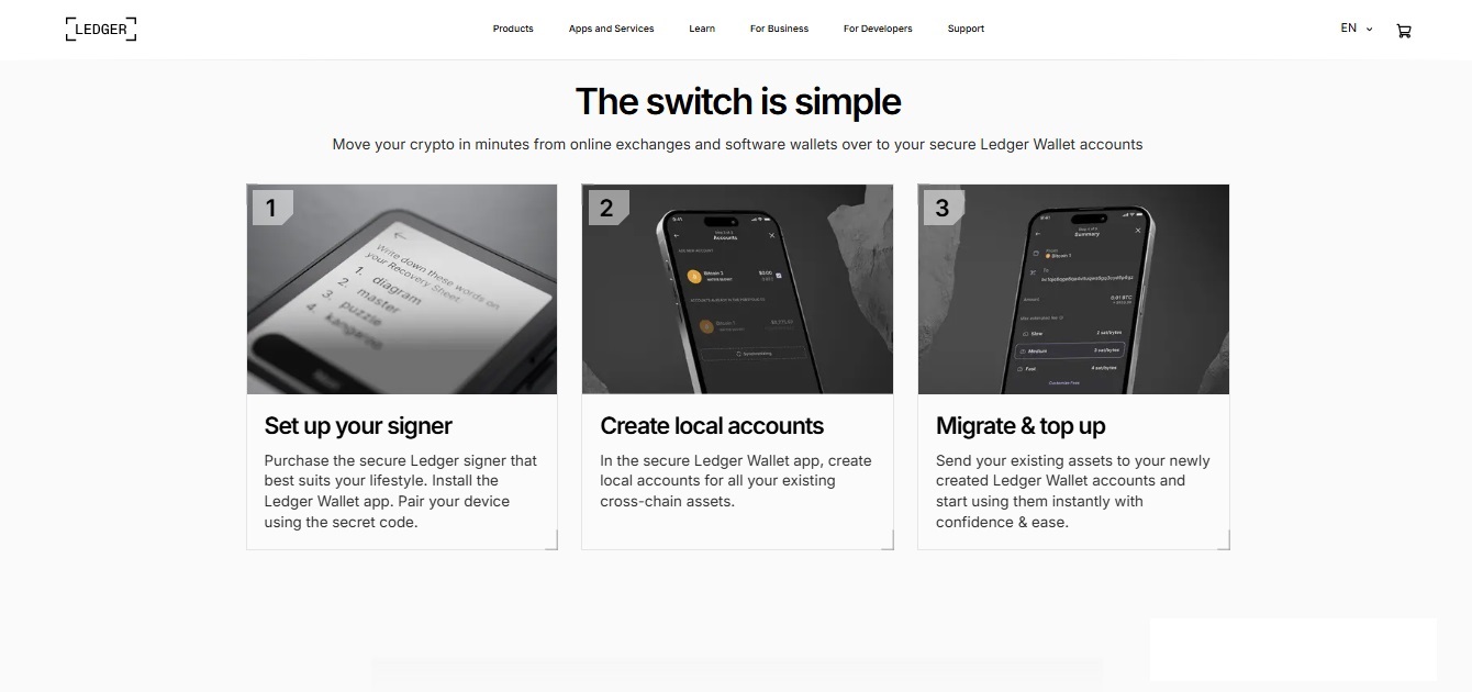 Compared to exchanges and software wallets, a Ledger hardware wallet offers several clear benefits:
